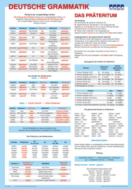 Двустранното табло DEUTSCHE GRAMMATIK улеснява и разнообразява езиковото обучение, като обобщава всичко, което учениците са научили за двете минали времена в немския език: Das Perfekt и Das Präteritum. Таблото може да се използва при въвеждане на нови знания и при преговор и е ценен помощник за всяка езикова система.