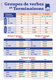 ТАБЛО GROUPES DE VERBES ET TERMINAISONS ПО ФРЕНСКИ ЕЗИК ЗА 5. КЛАС