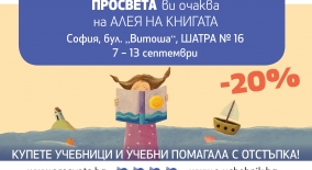 „Просвета“ Ви очаква на Алеята на книгата, на бул. „Витоша“ под шатра № 16, където от 7 до 13 септември ще намерите всичко нужно за силен старт на учебната година с отстъпка 20% от коричната цена. Заповядайте на щанда ни, където ще подредим за Вас нашите най-нови и актуални учебници и помагала за...