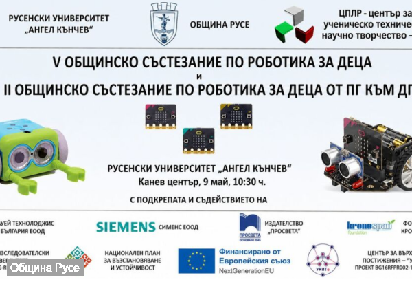 На 9 май /събота/ от 10:30 часа ще се проведе 5-ото Общинско състезание по роботика за ученици от 3 и 4 клас, както и 2-ото Общинско състезание по роботика за деца от подготвителните групи към 6 детски градини в община Русе. Събитието се организира по инициатива на Община Русе, Русенския университет „Ангел Кънчев“ и Център за подкрепа и личностно развитие – Център за ученическо техническо и научно творчество – Русе.